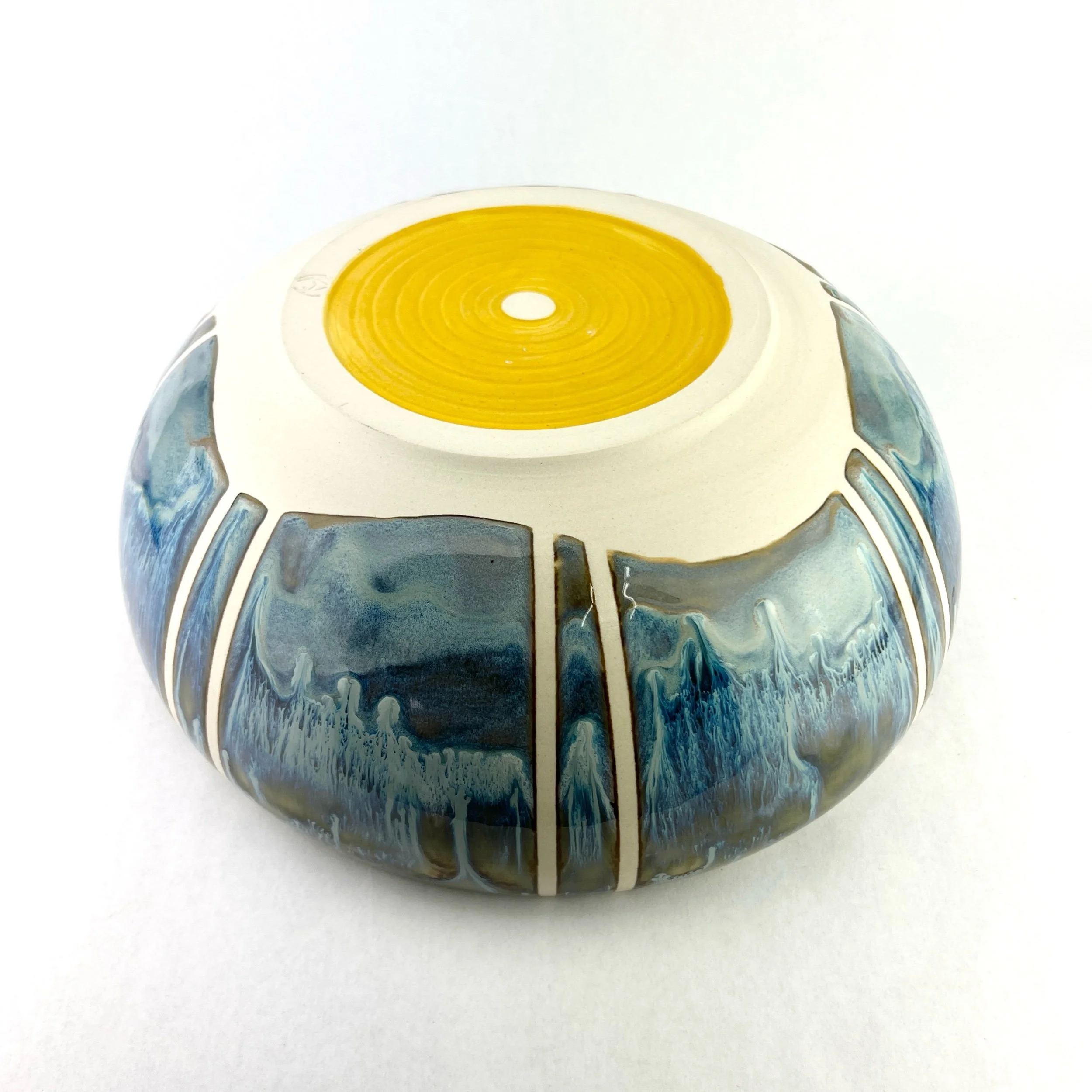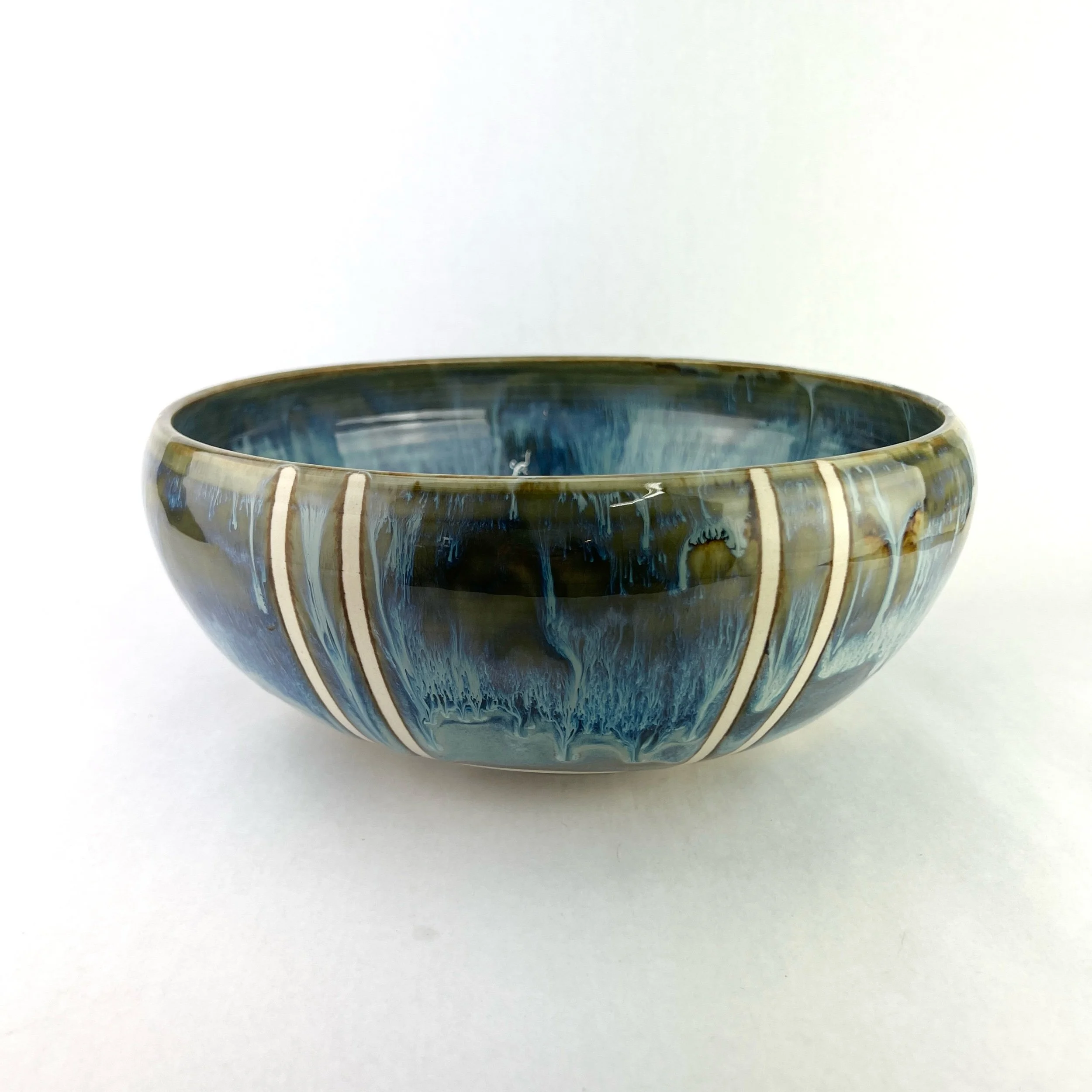 These serving bowls are thrown and trimmed by hand. The details below are approximate since each bowl set is uniquely crafted.