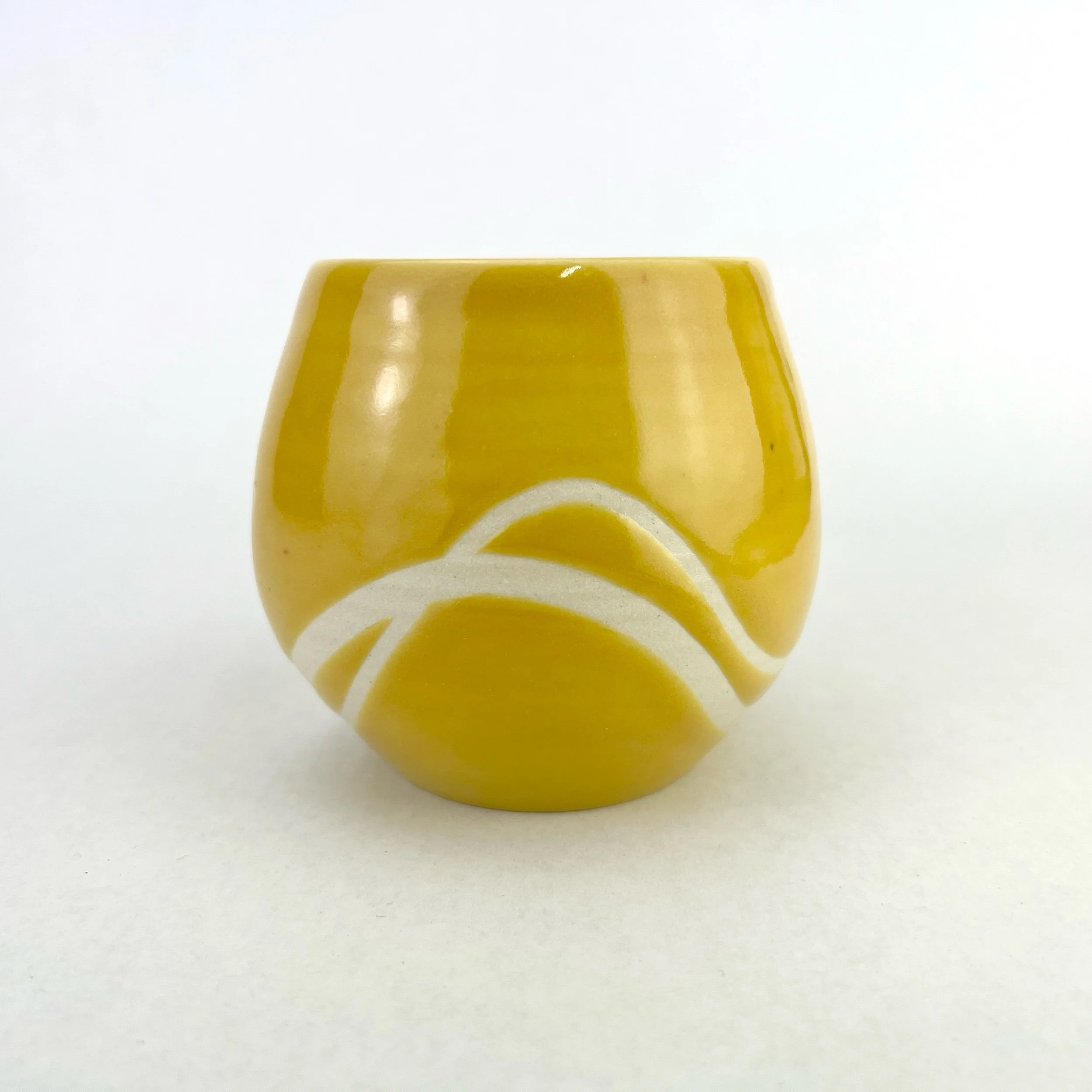 These tumblers are thrown and trimmed by hand. Each design is intuitively created on each piece every time. The details below are approximate since each tumbler is uniquely crafted.