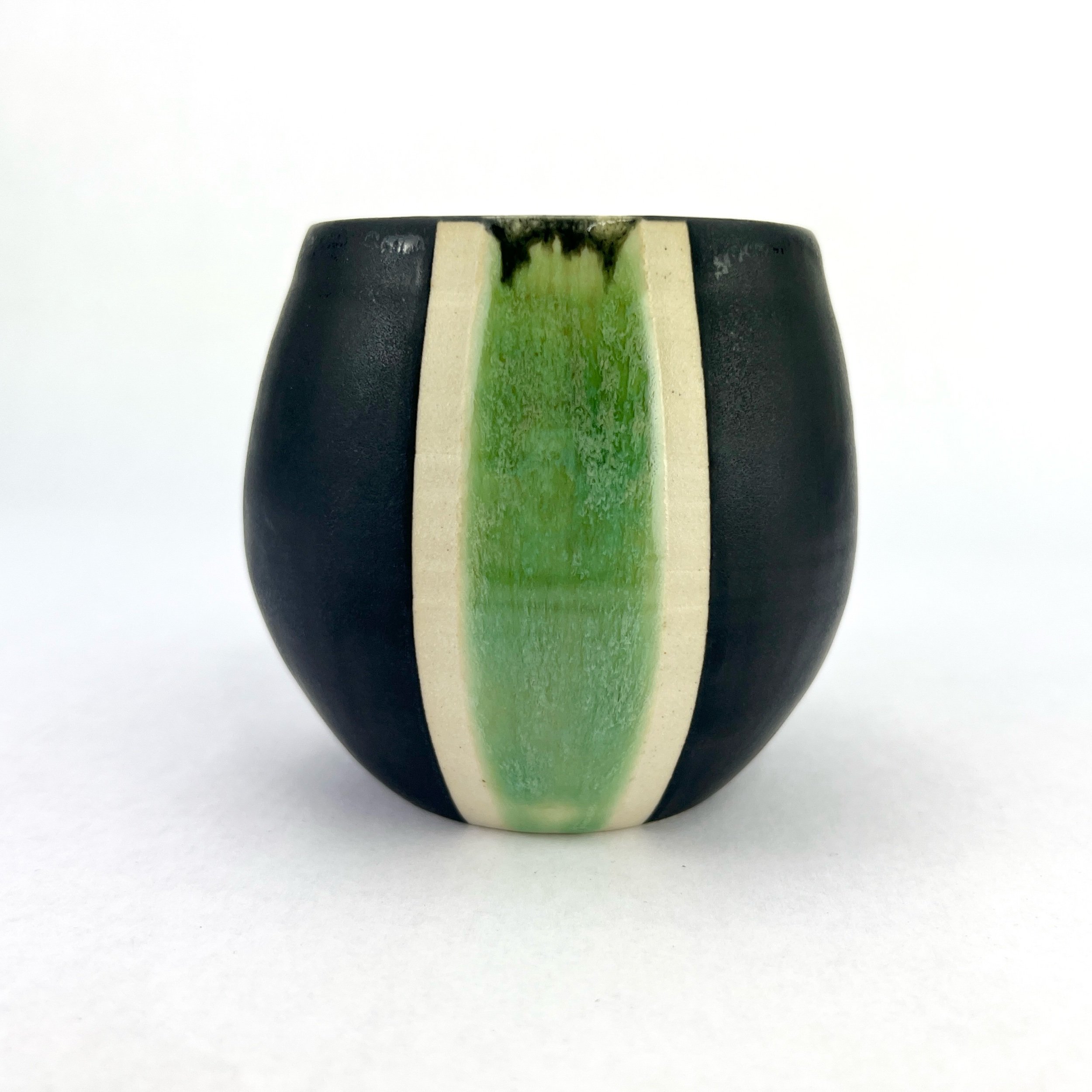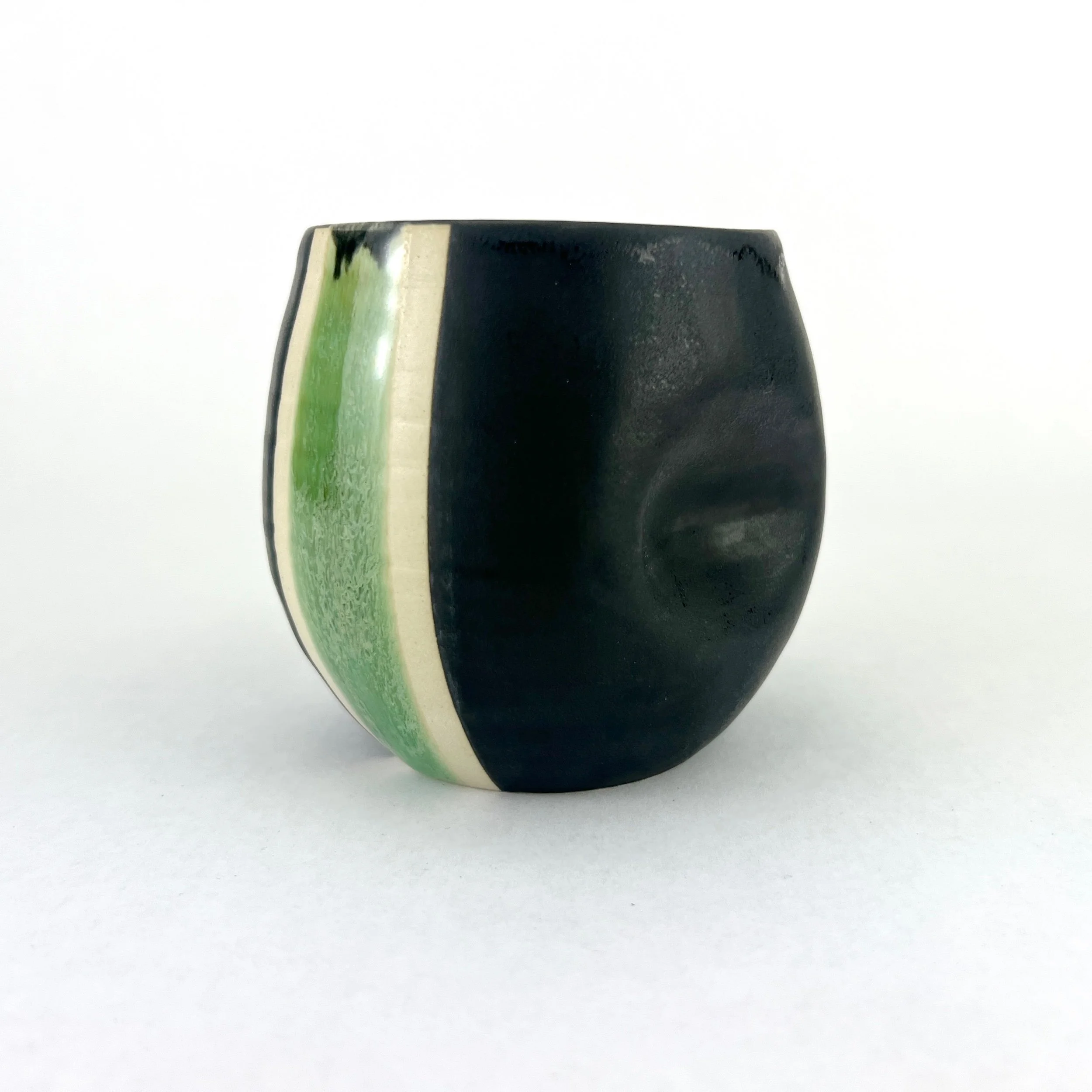 These tumblers are thrown and trimmed by hand. Each design is intuitively created on each piece every time. The details below are approximate since each tumbler is uniquely crafted.