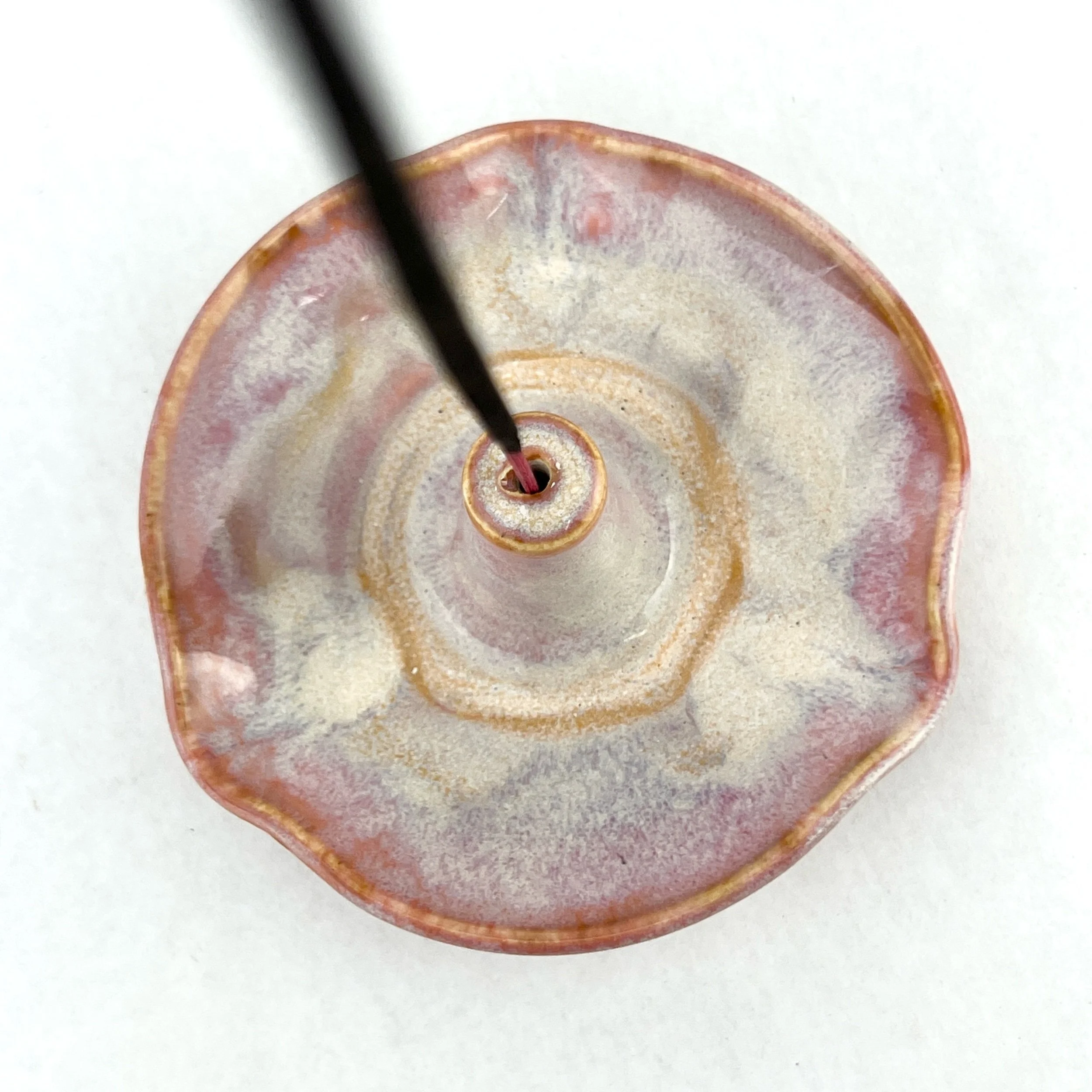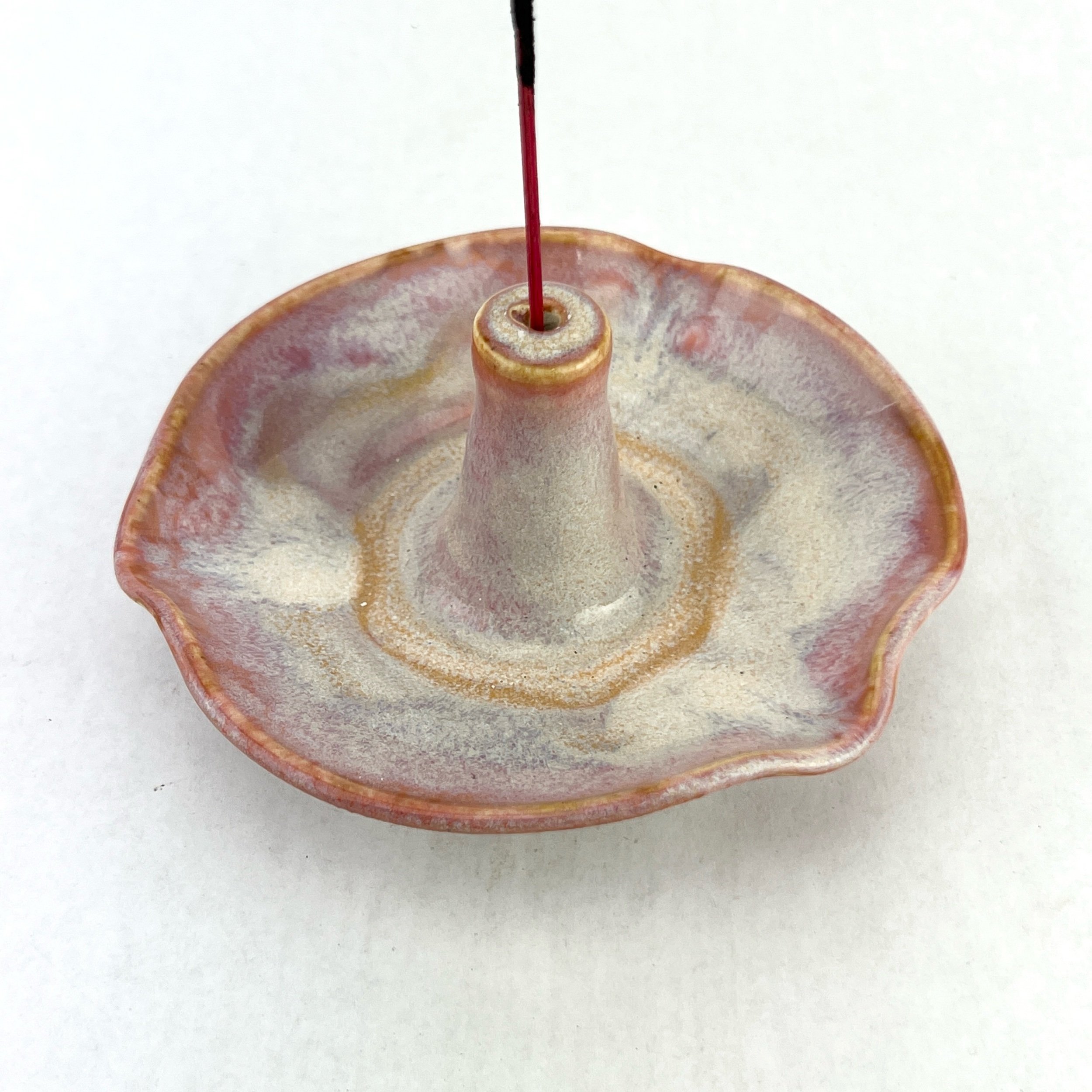 These incense holders are thrown and trimmed by hand. The details below are approximate since each incense holder is uniquely crafted.