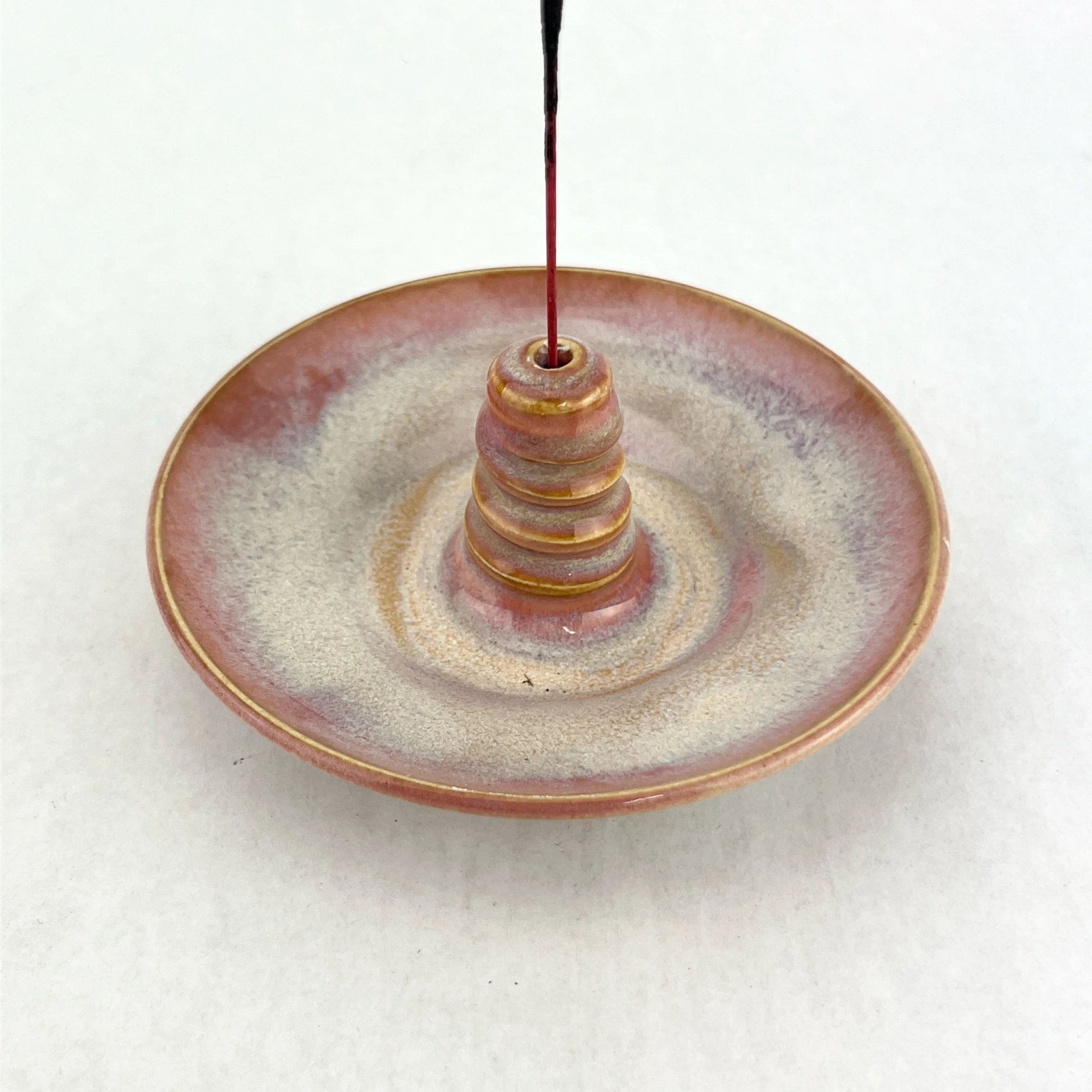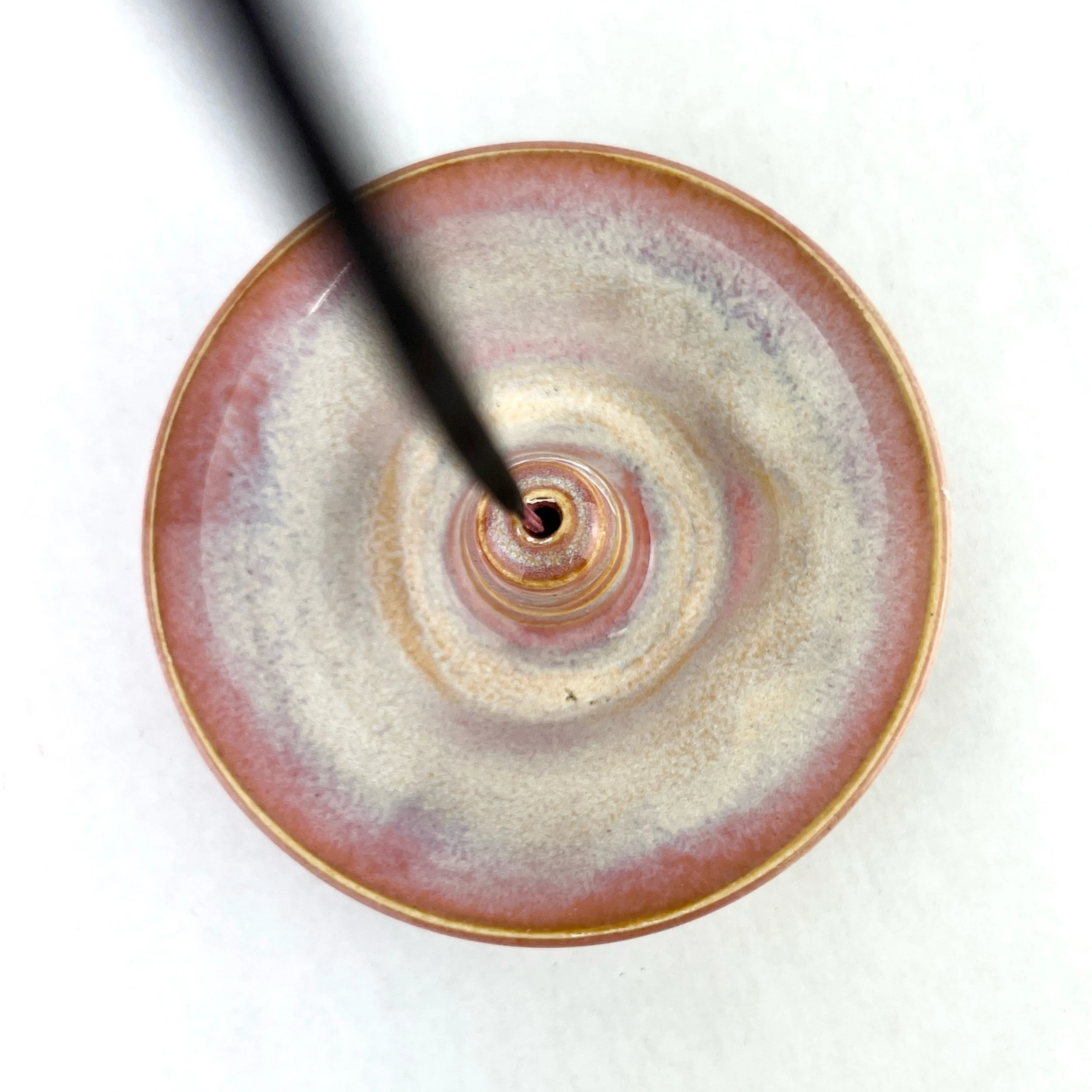 These incense holders are thrown and trimmed by hand. The details below are approximate since each incense holder is uniquely crafted.