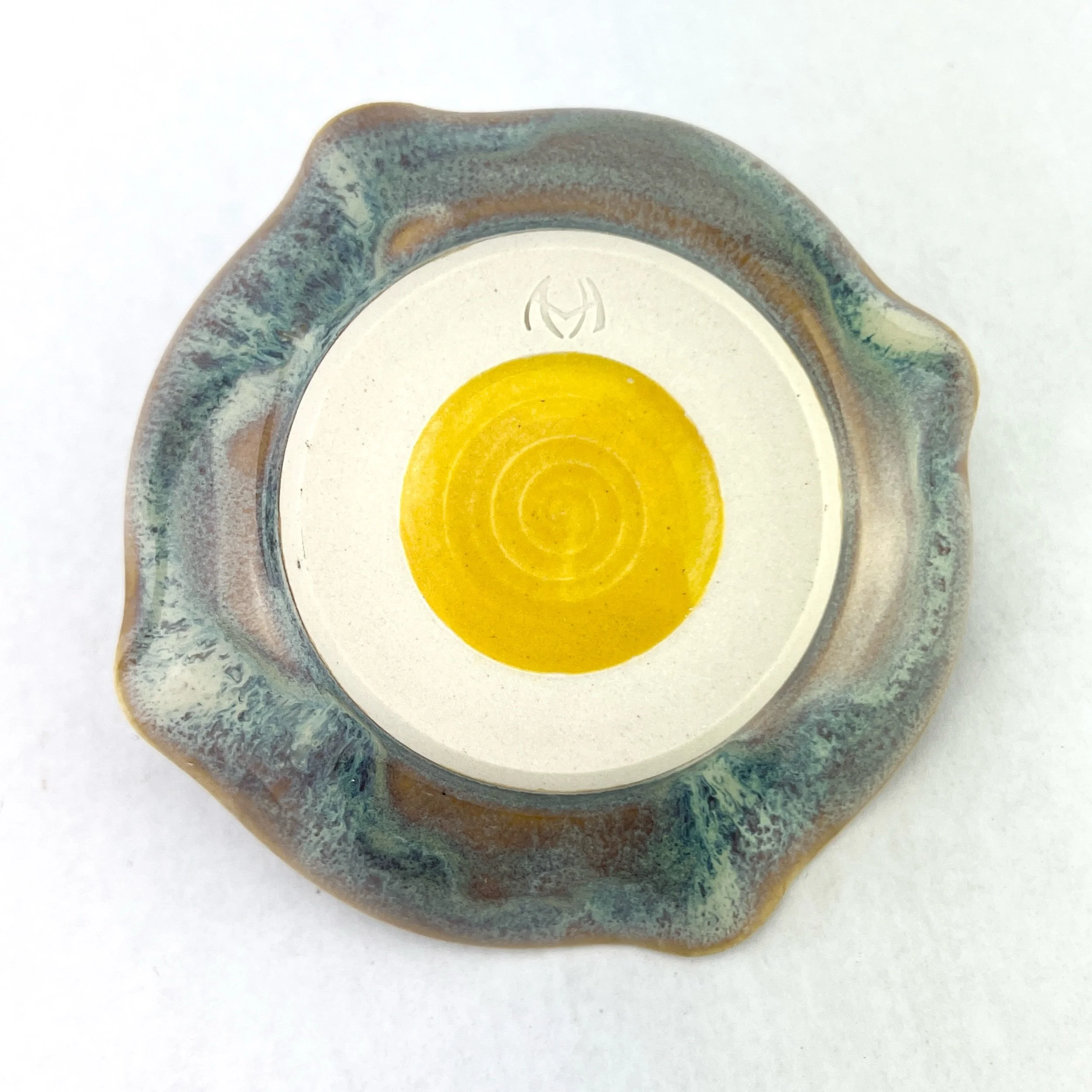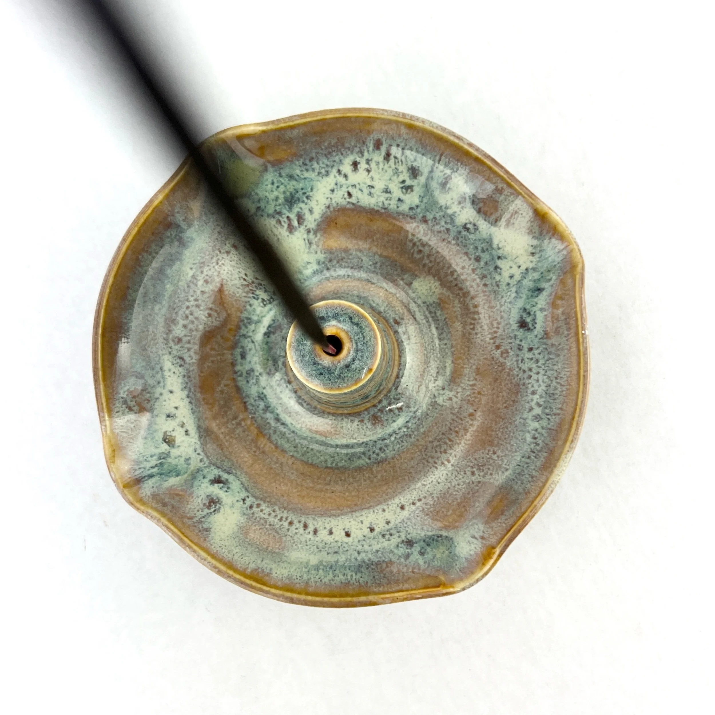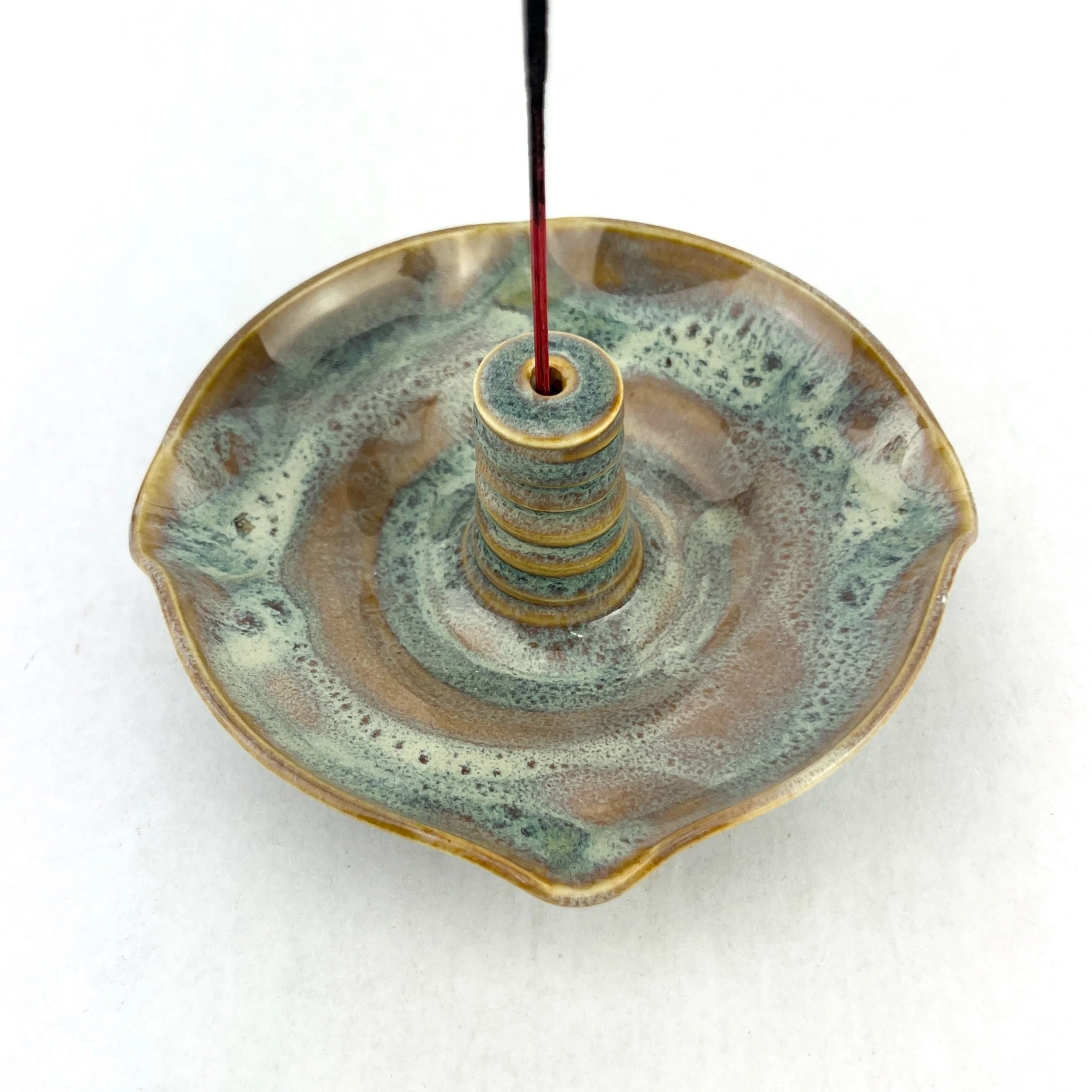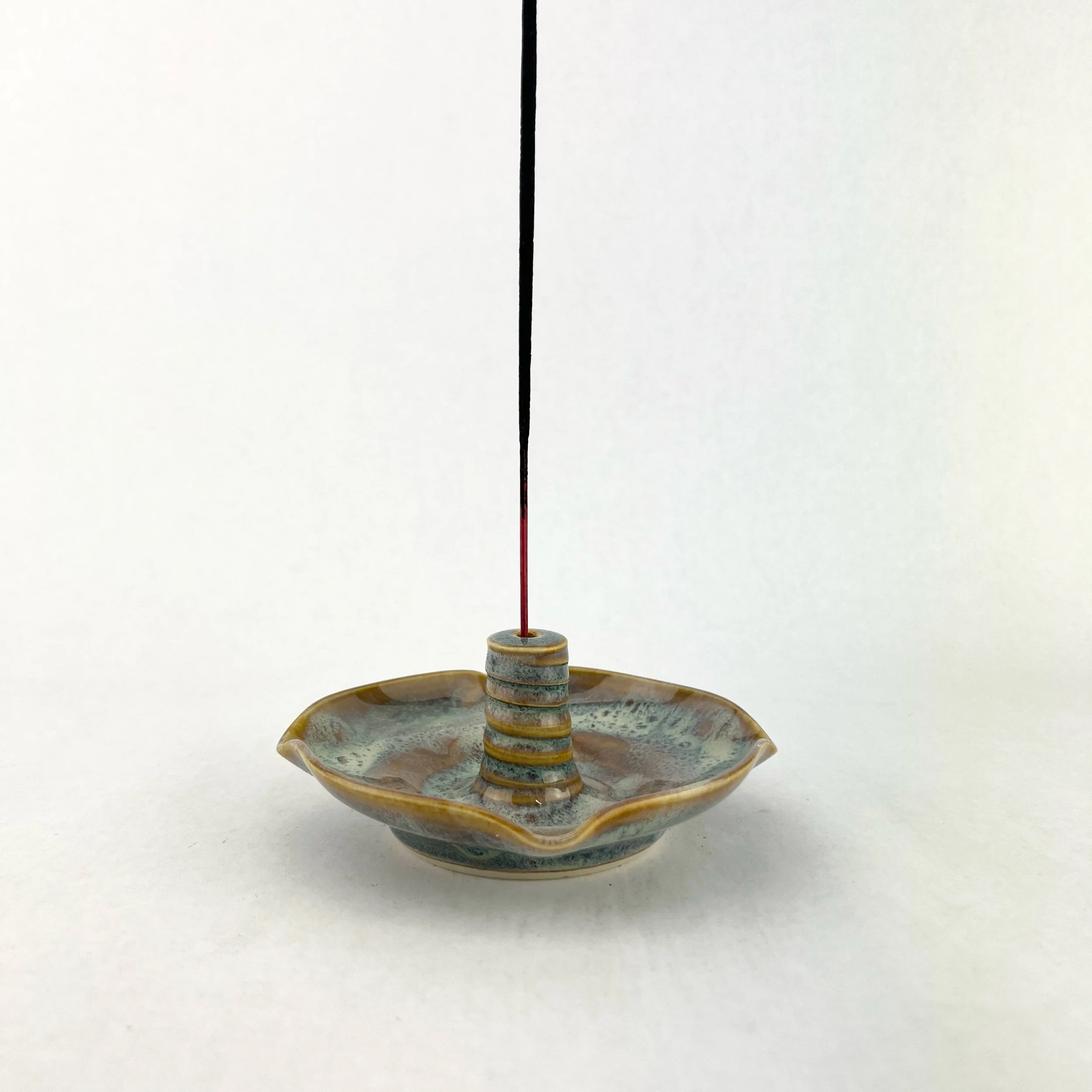 These incense holders are thrown and trimmed by hand. The details below are approximate since each incense holder is uniquely crafted.