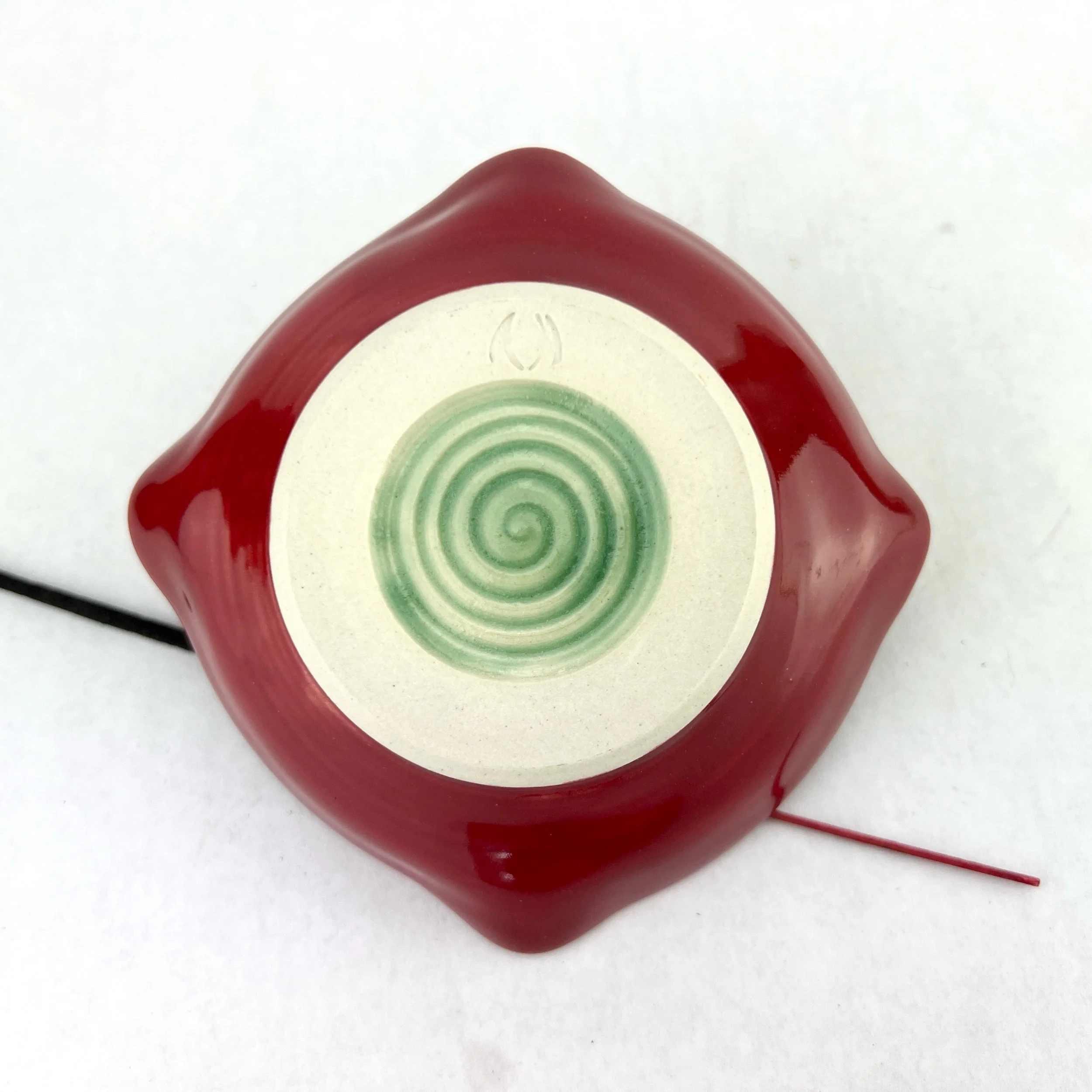 These incense holders are thrown and trimmed by hand. The details below are approximate since each incense holder is uniquely crafted.