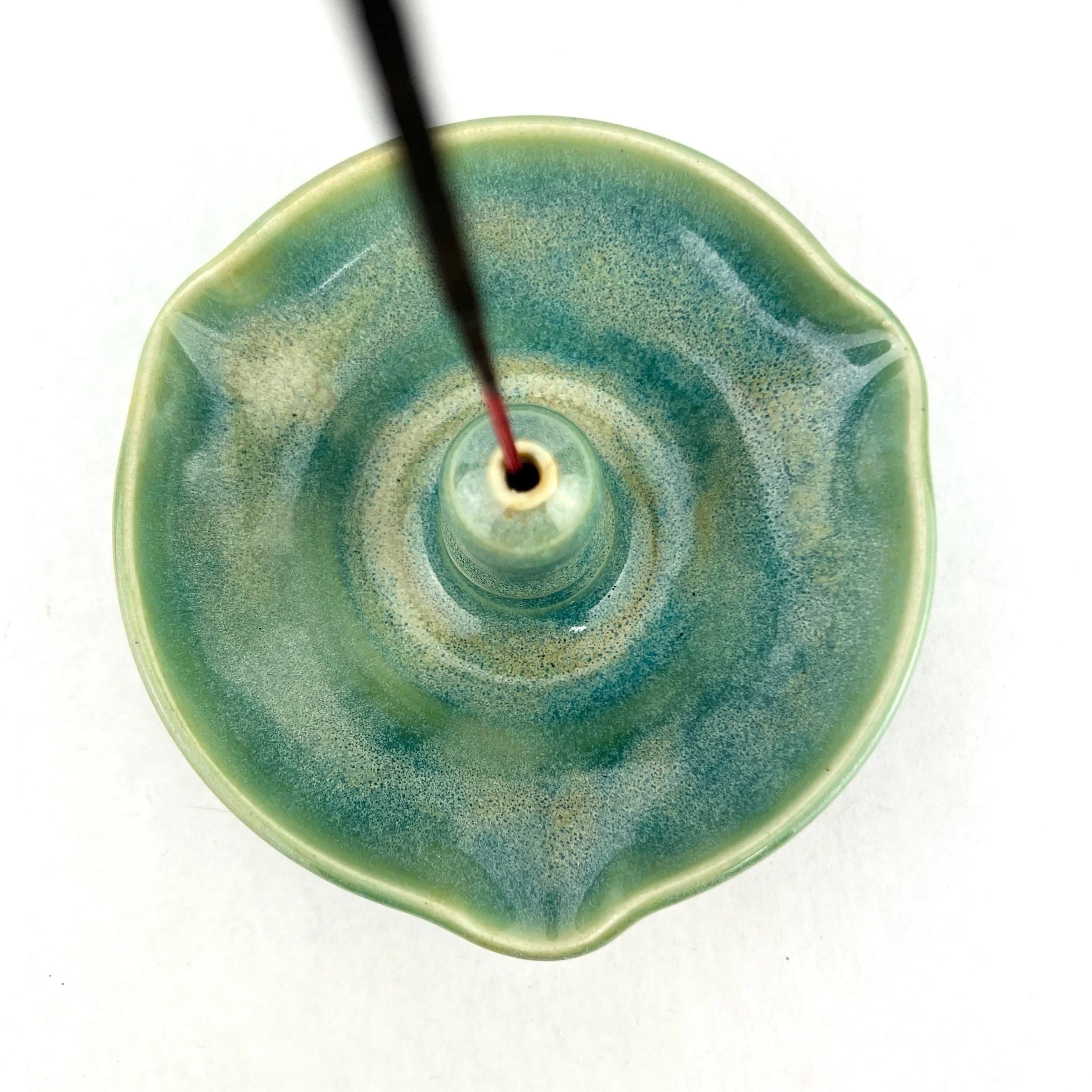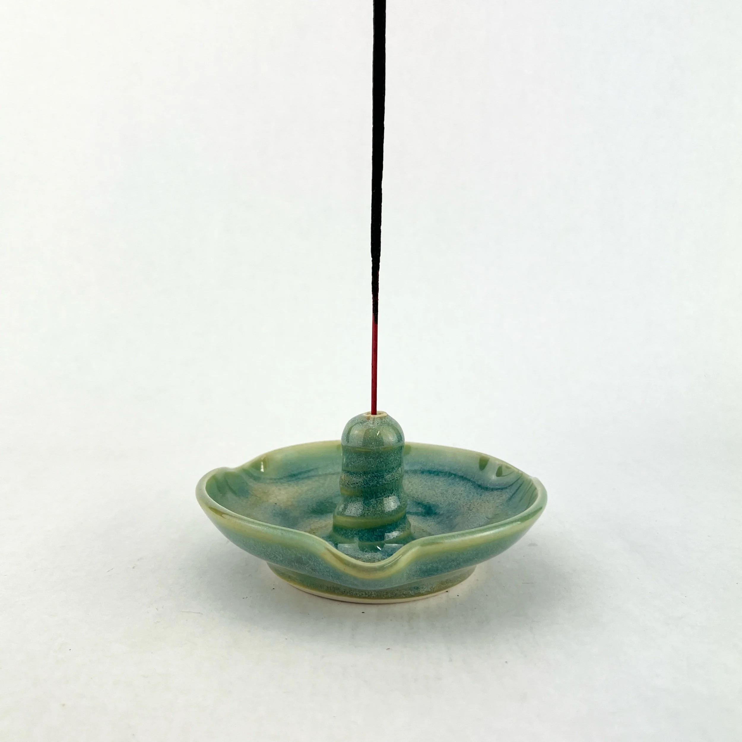 These incense holders are thrown and trimmed by hand. The details below are approximate since each incense holder is uniquely crafted.