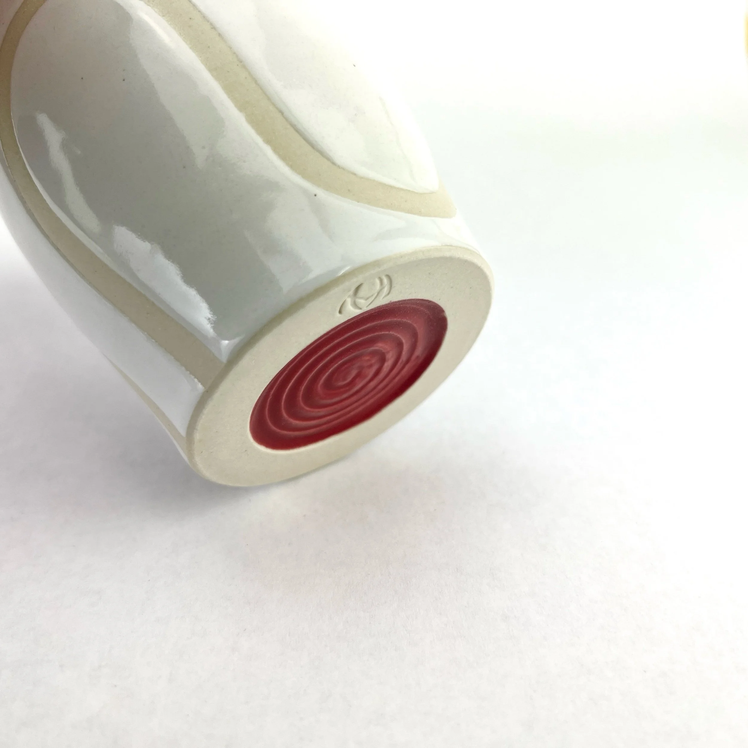 These bottles are thrown and trimmed by hand. Each design is intuitively created on each piece every time. The details below are approximate since each oil bottle is uniquely crafted.