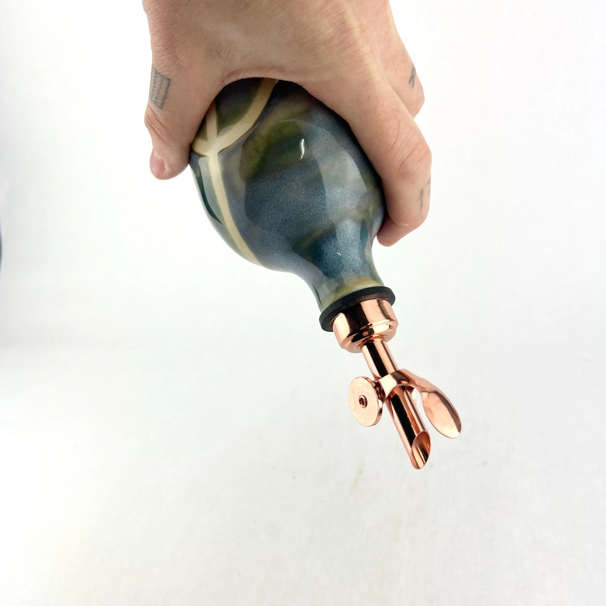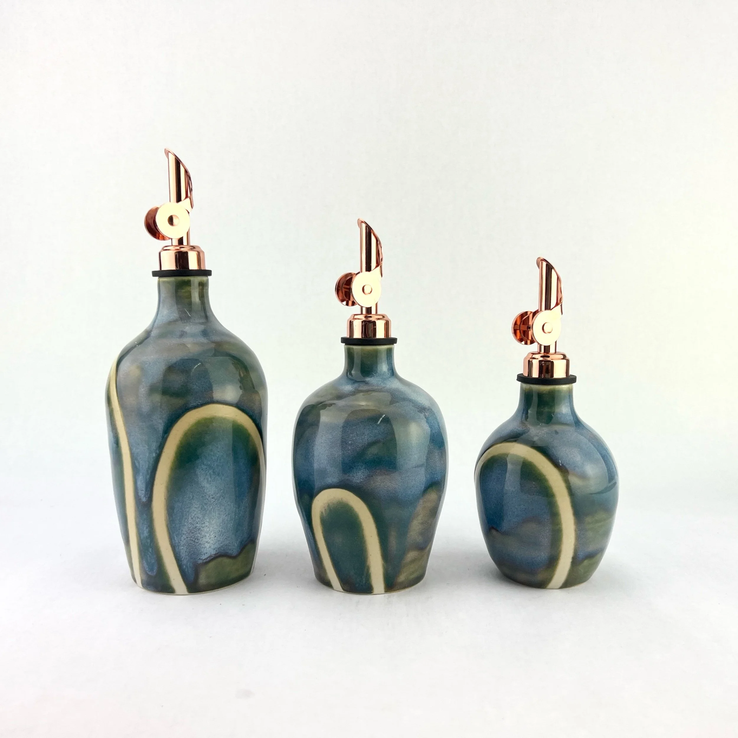 These oil bottles pair beautifully with utensil holders, butter keepers, or spoon rests. You can always commission a custom matching set by emailing Aby directly!