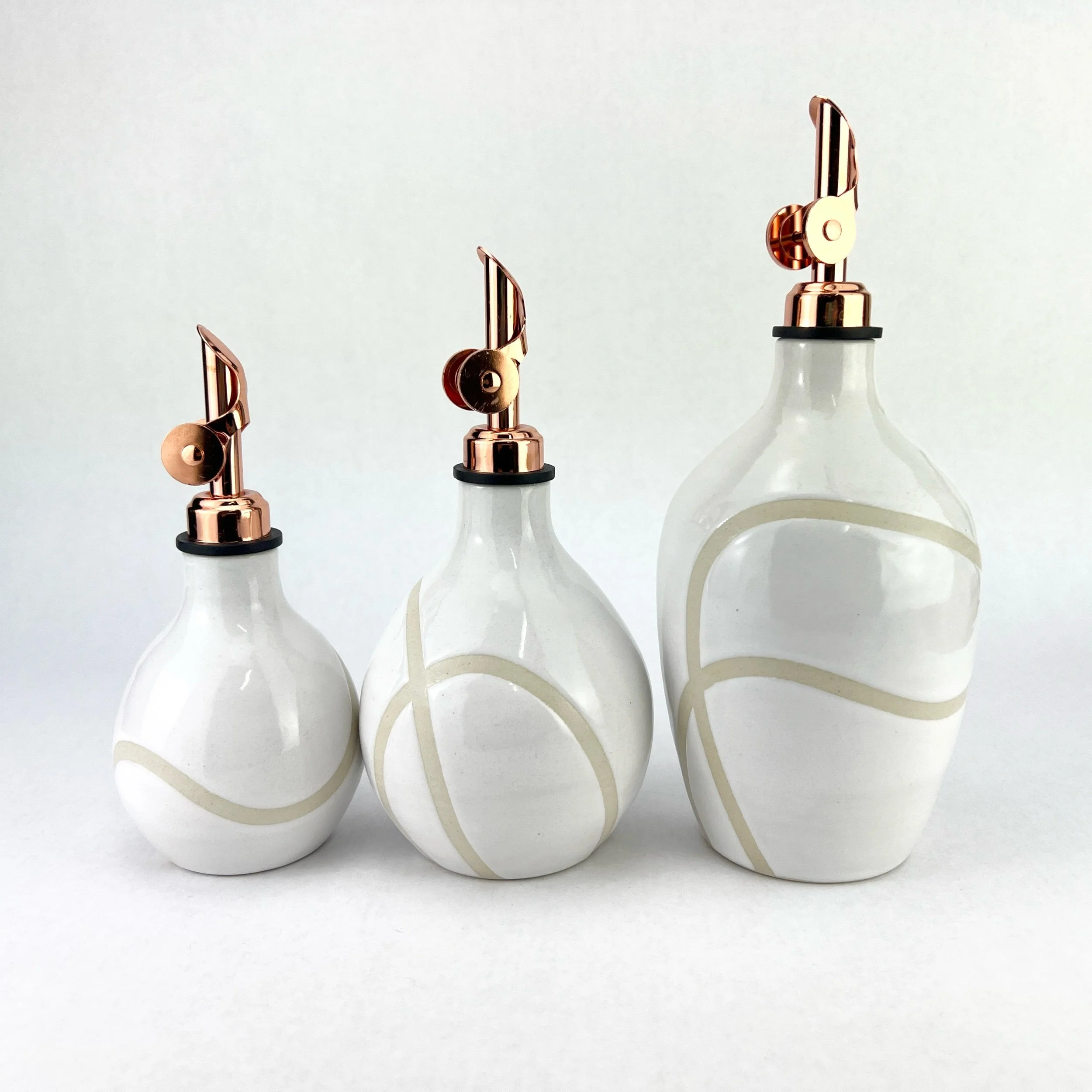 These oil bottles pair beautifully with utensil holders, butter keepers, or spoon rests. You can always commission a custom matching set by emailing Aby directly!