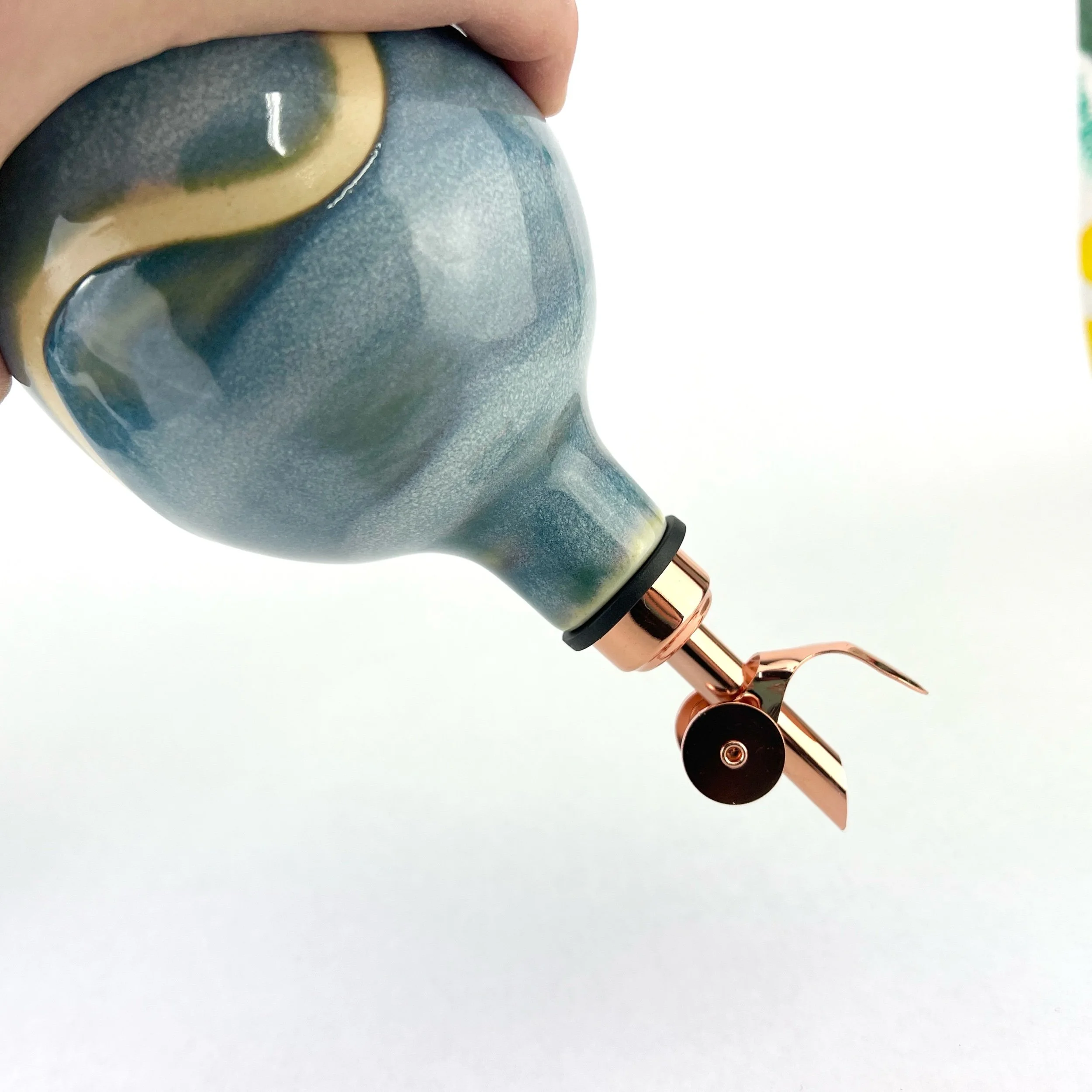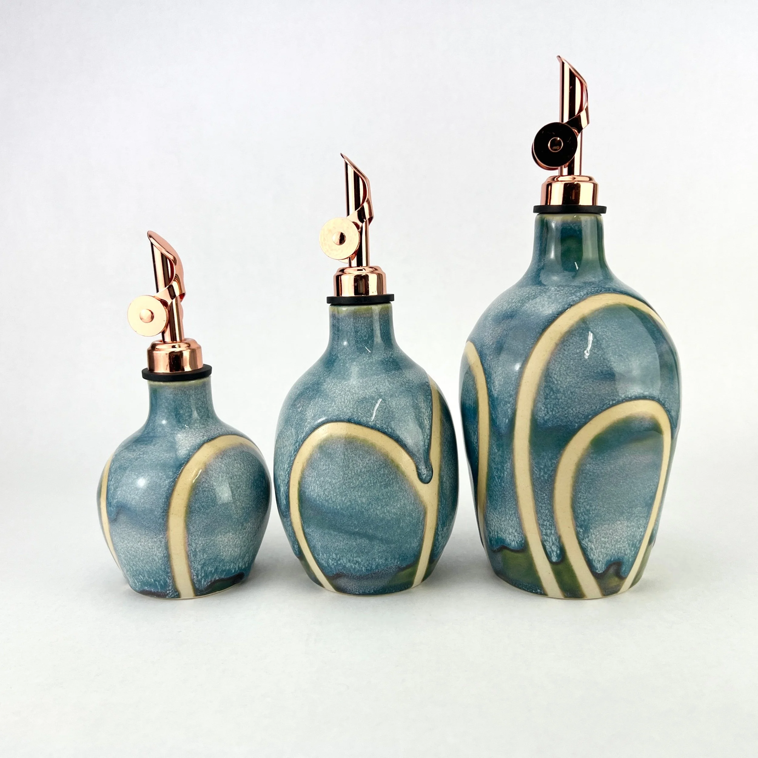These oil bottles pair beautifully with utensil holders, butter keepers, or spoon rests. You can always commission a custom matching set by emailing Aby directly!