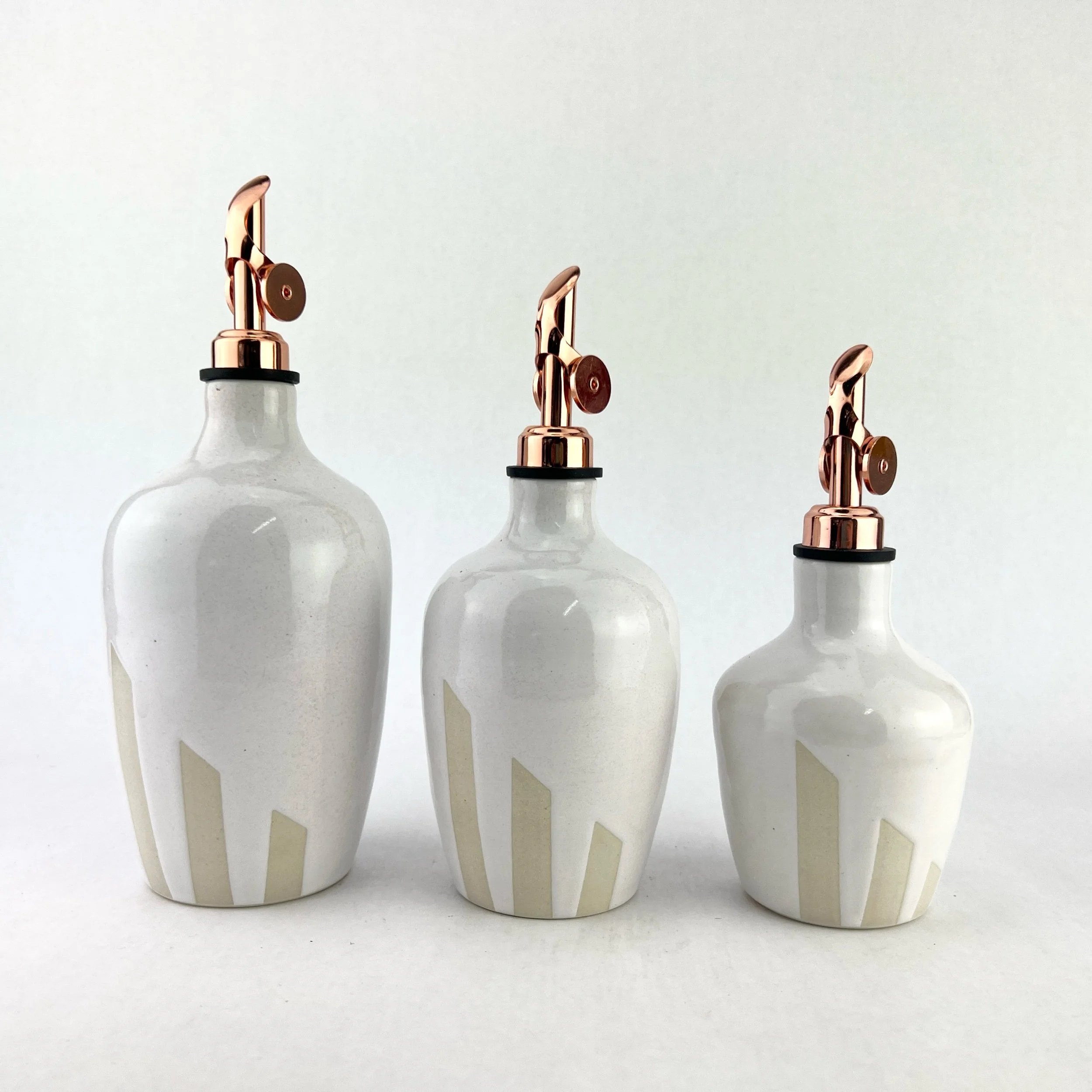 These oil bottles pair beautifully with utensil holders, butter keepers, or spoon rests. You can always commission a custom matching set by emailing Aby directly!