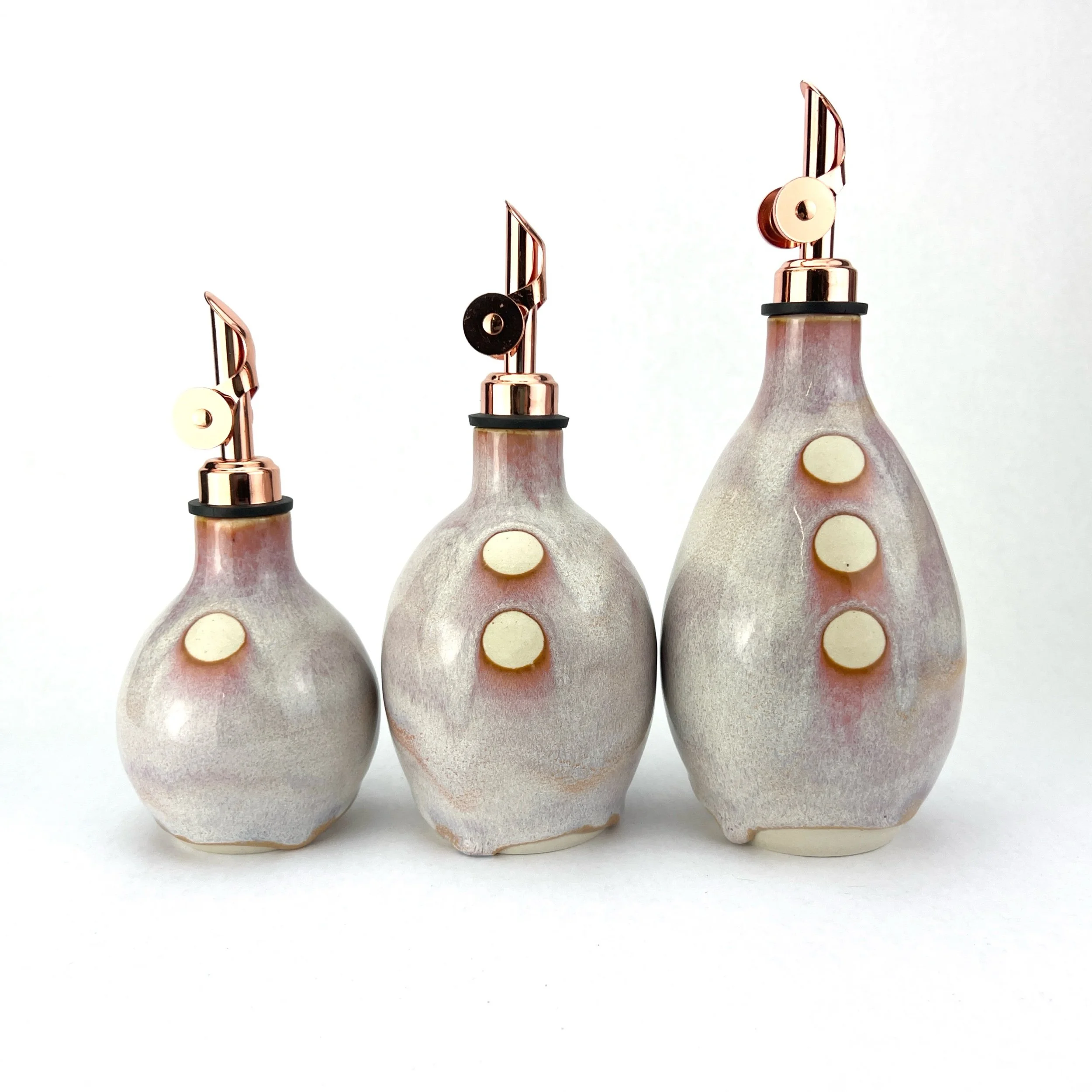 These oil bottles pair beautifully with utensil holders, butter keepers, or spoon rests. You can always commission a custom matching set by emailing Aby directly!