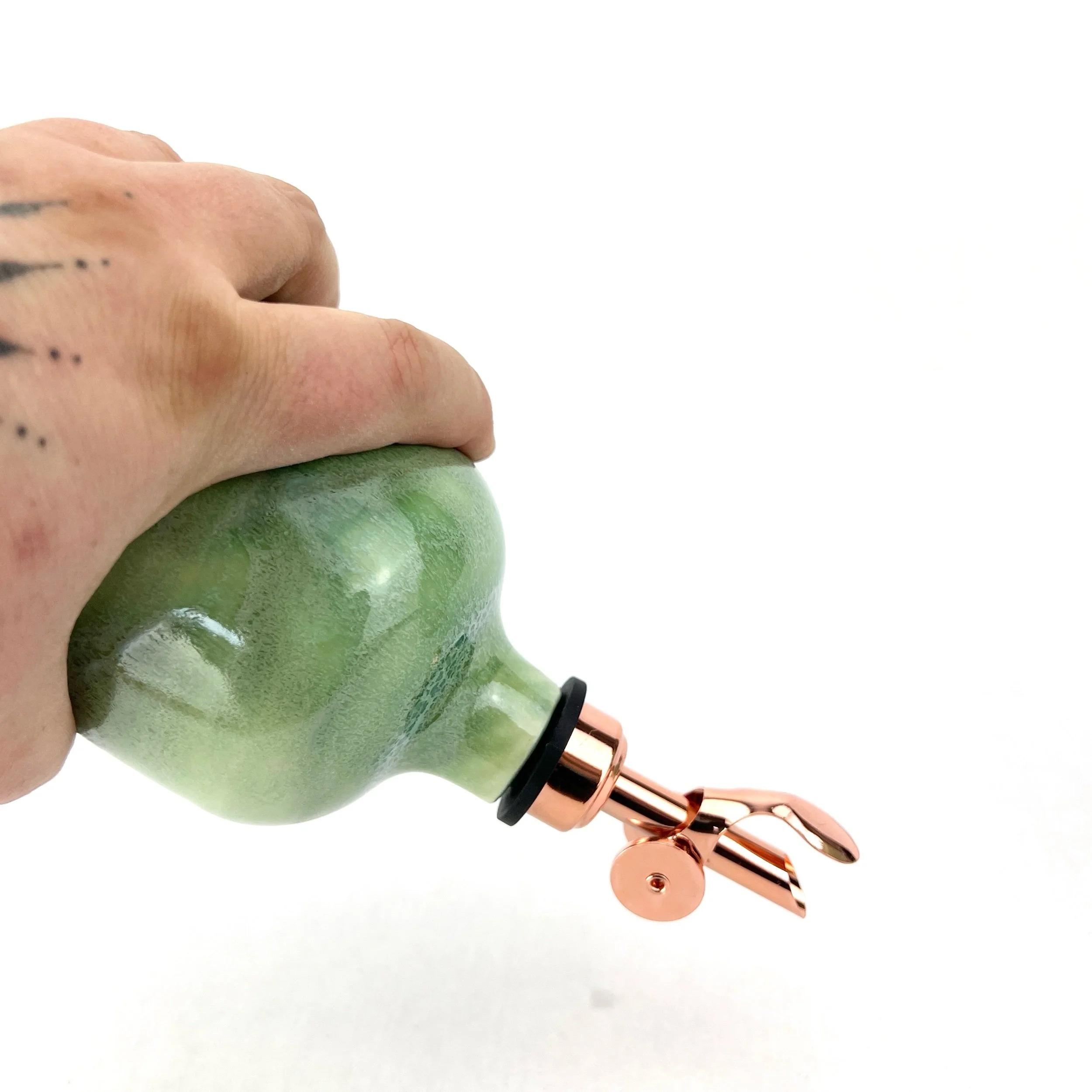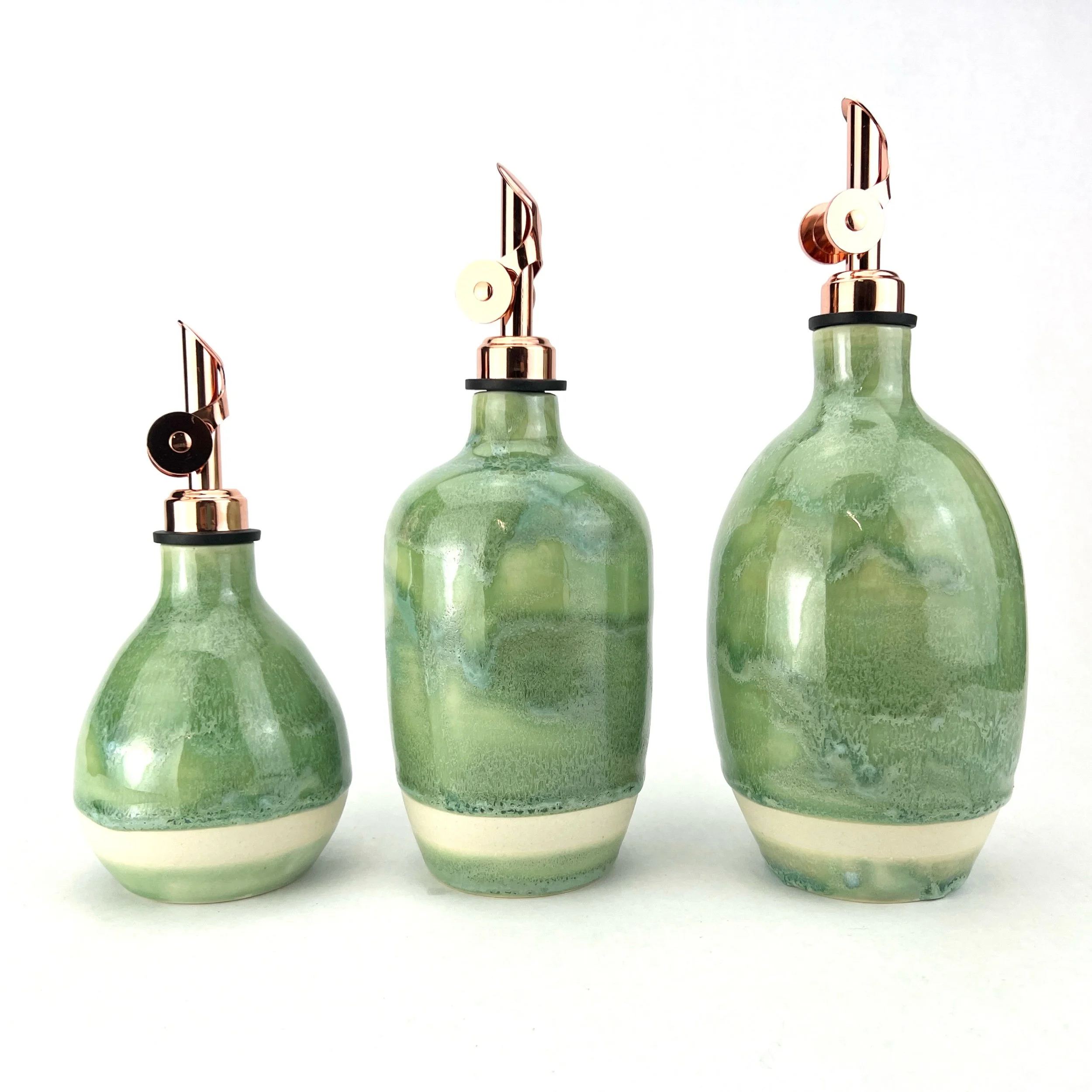 These oil bottles pair beautifully with utensil holders, butter keepers, or spoon rests. You can always commission a custom matching set by emailing Aby directly!