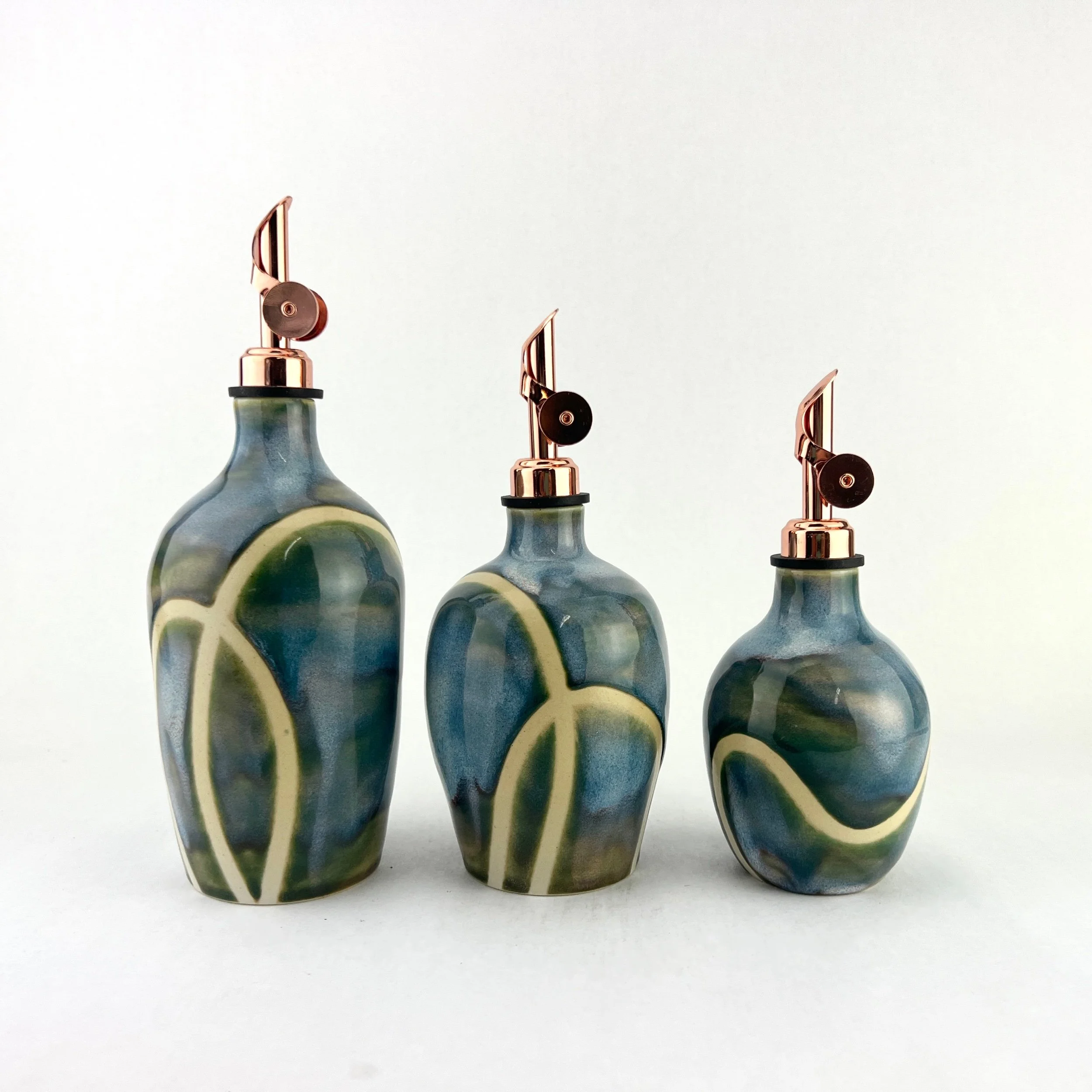 These oil bottles pair beautifully with utensil holders, butter keepers, or spoon rests. You can always commission a custom matching set by emailing Aby directly!