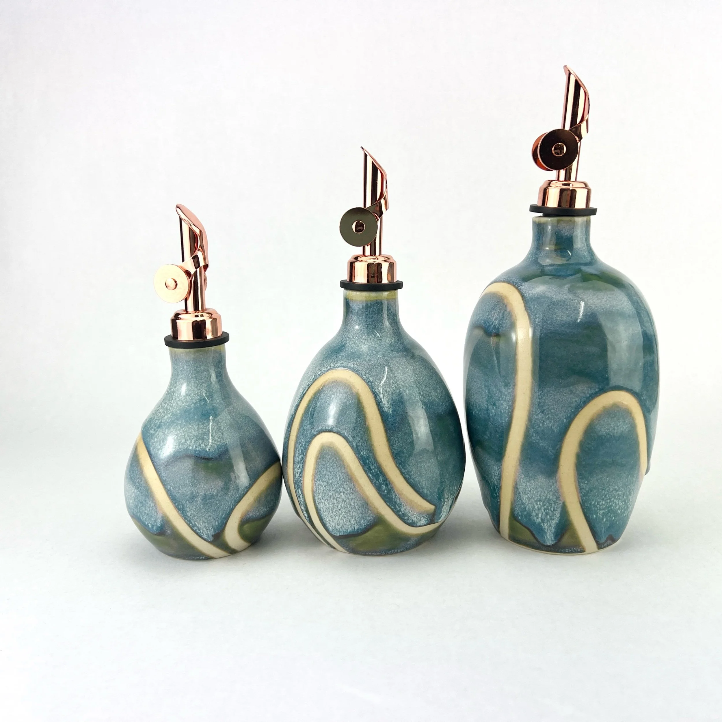 These oil bottles pair beautifully with utensil holders, butter keepers, or spoon rests. You can always commission a custom matching set by emailing Aby directly!