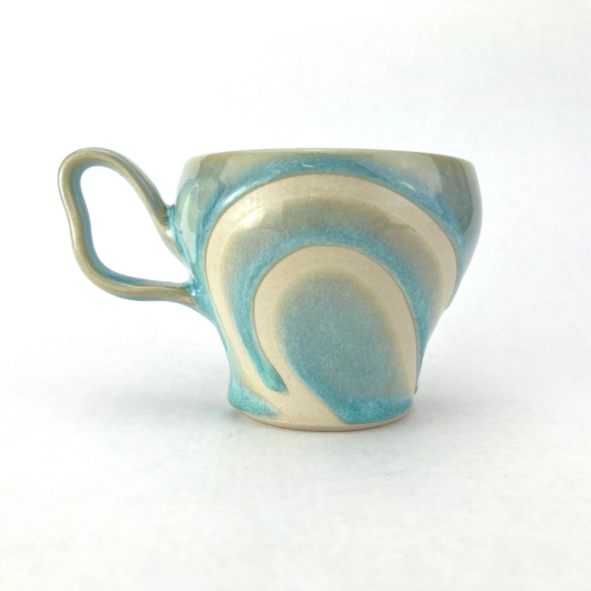 Each mug is thrown and trimmed by hand. Each design is intuitively created on each piece every time. The details below are approximate since each mug is uniquely crafted. I take additional steps at each part of the making process to ensure that the feel of the clay has the luxurious feel of a smoother river stone.