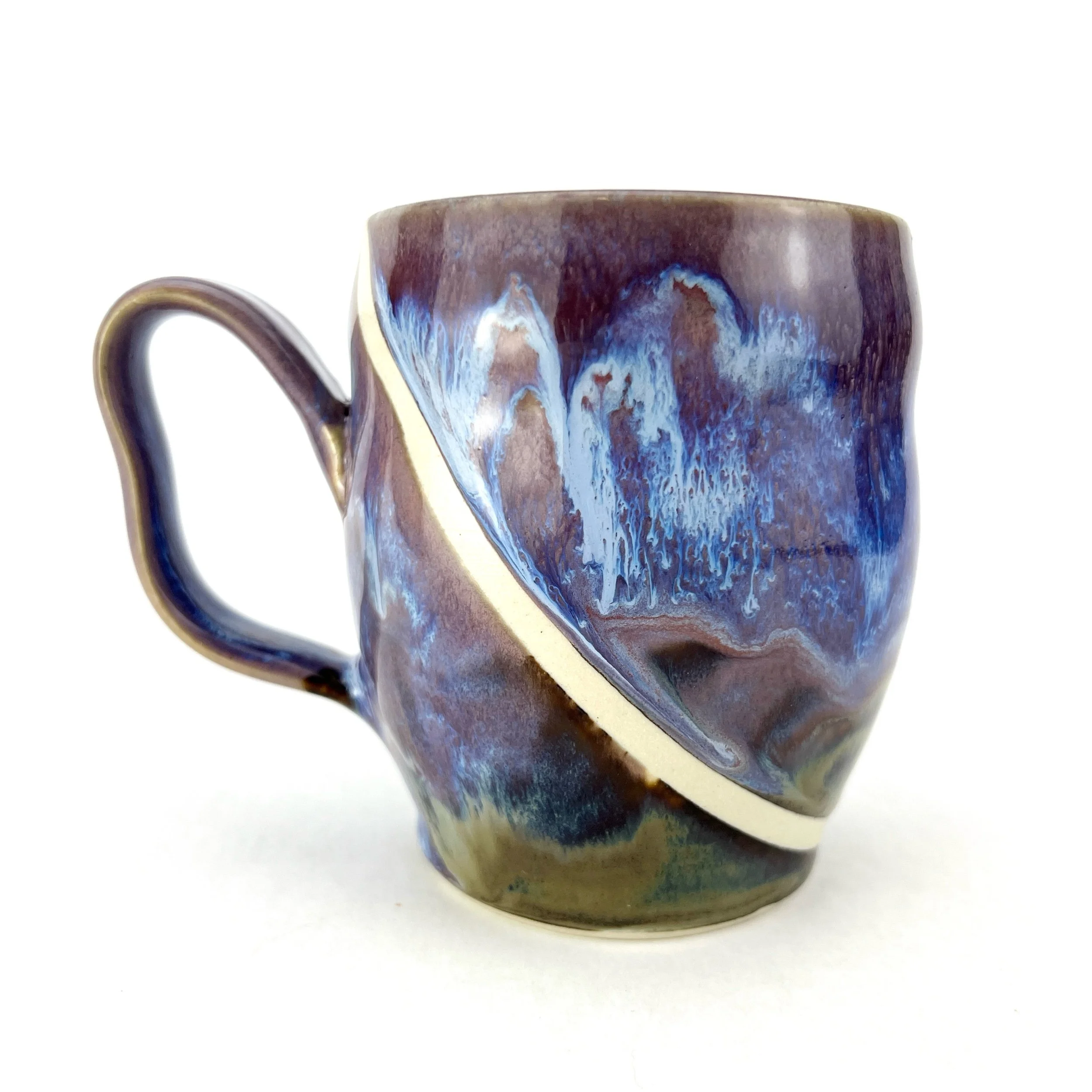 Each mug is thrown and trimmed by hand. Each design is intuitively created on each piece every time. The details below are approximate since each mug is uniquely crafted. I take additional steps at each part of the making process to ensure that the feel of the clay has the luxurious feel of a smoother river stone.