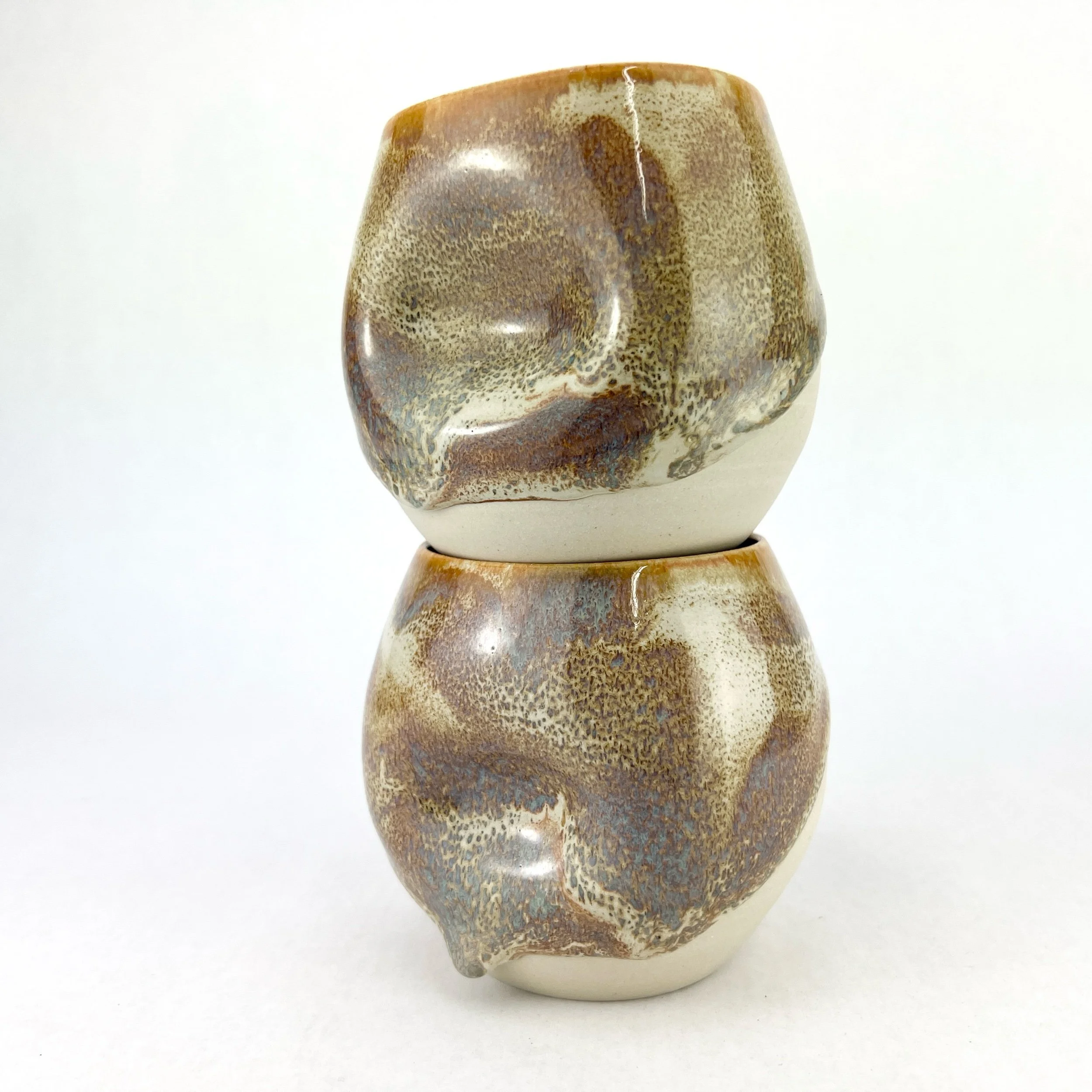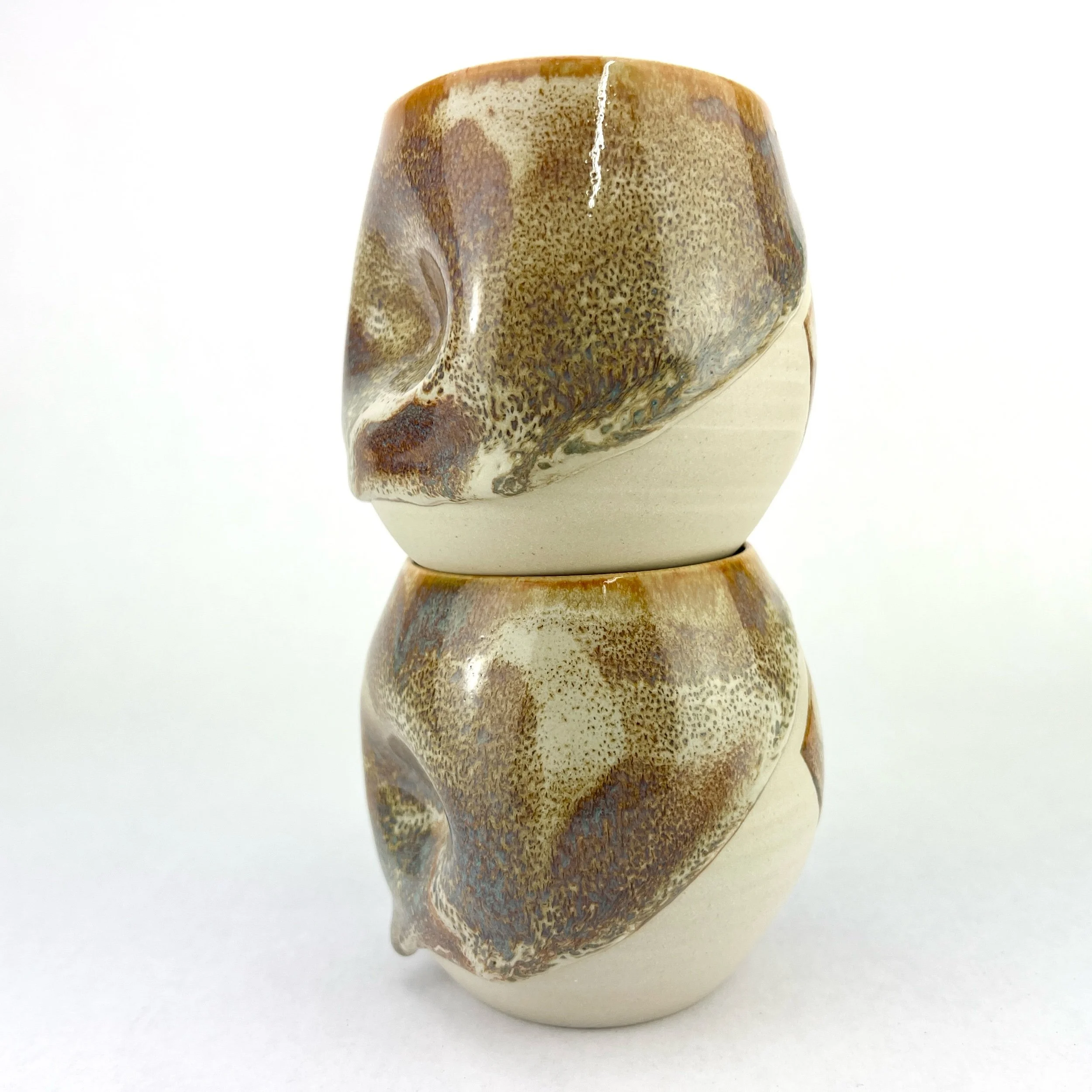 These boozy tumblers are my babies ~ I’ve been making them for over 10 years and they started out as a personal preference to have a tumbler that would feel good to hold, but also have the tactile experience of a worry stone. I found that in social situations fidgeting settles my nerves, and these tumblers are the perfect middle ground of comfort, function, and tactile experience!