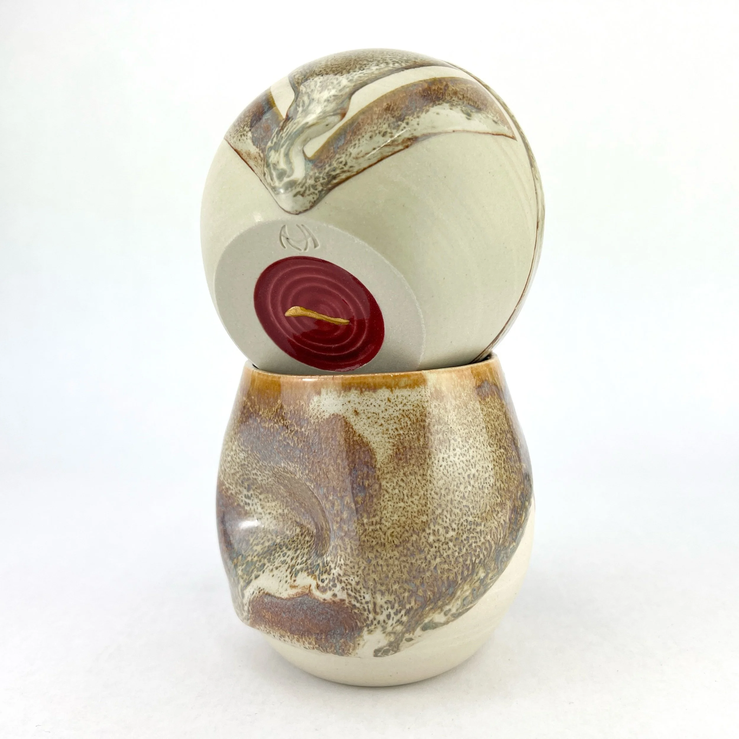 These tumblers are thrown and trimmed by hand. Each design is intuitively created on each piece every time. The details below are approximate since each tumbler is uniquely crafted.