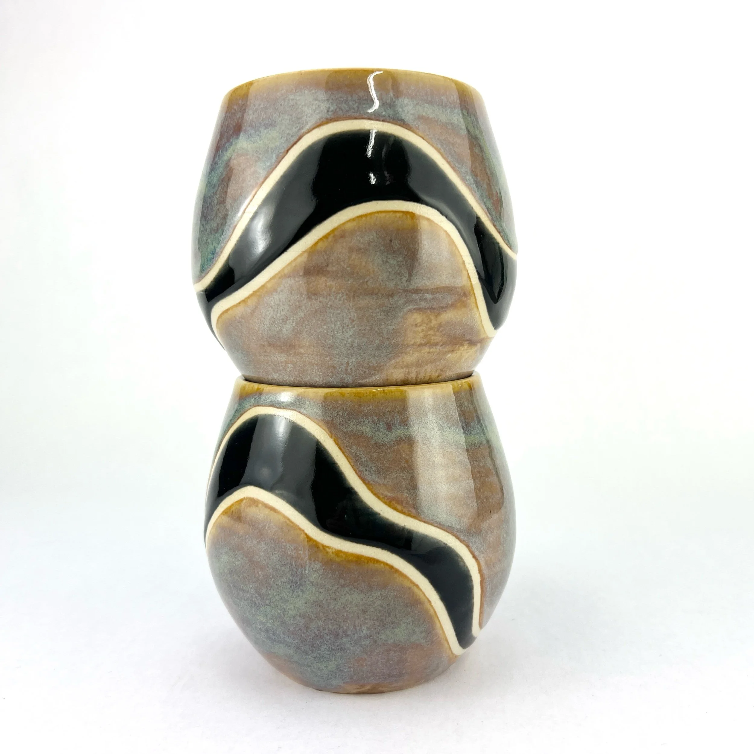 These boozy tumblers are my babies ~ I’ve been making them for over 10 years and they started out as a personal preference to have a tumbler that would feel good to hold, but also have the tactile experience of a worry stone. I found that in social situations fidgeting settles my nerves, and these tumblers are the perfect middle ground of comfort, function, and tactile experience!