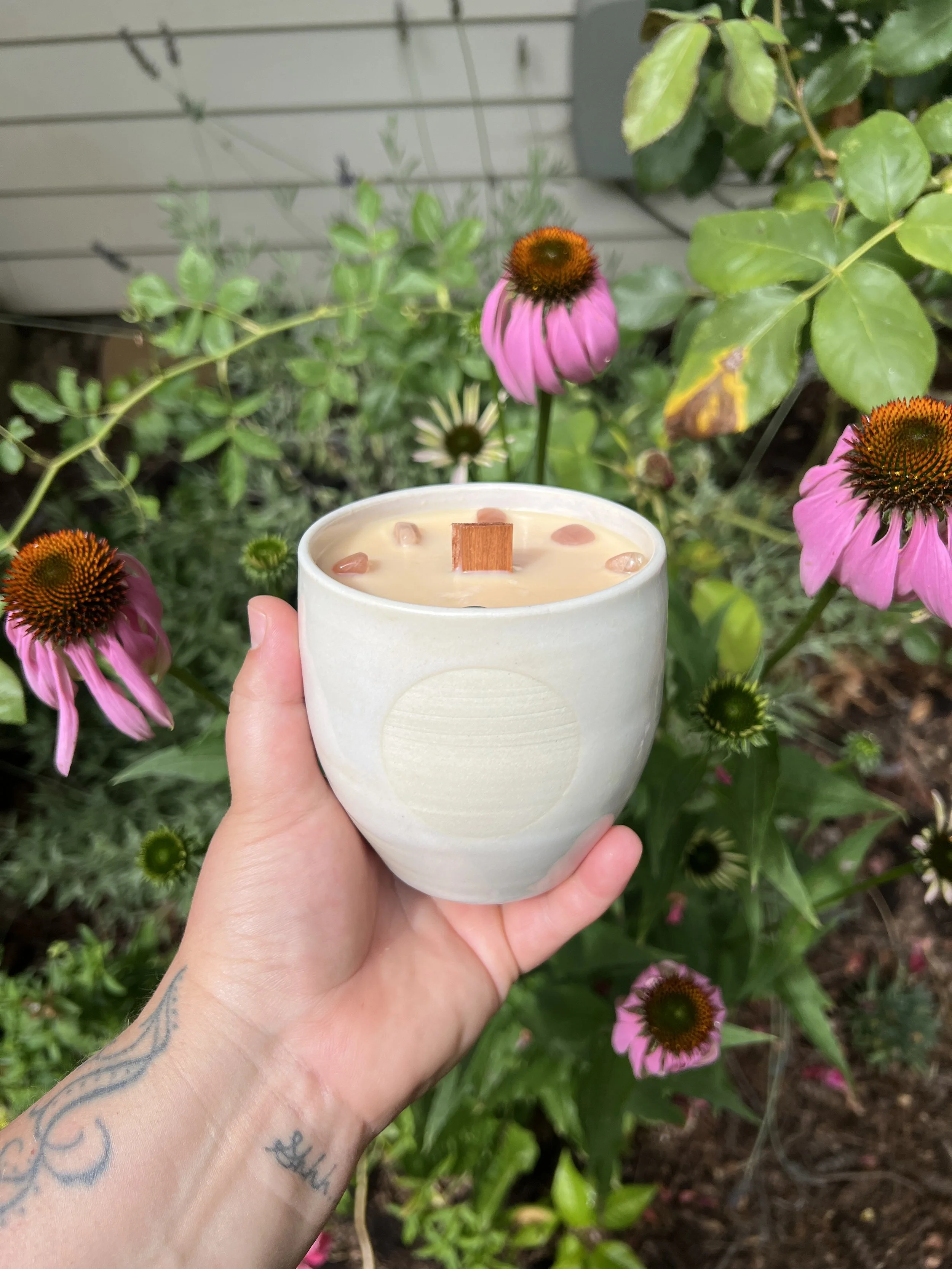 These candles formed out of my desire over 2020 to directly contribute connection, beauty, and love to my community. I make each and every candle consciously, intentionally pouring good energy into every step of the process. I mark my yearly sigil on every box of clay I bring into the studio. I’m very conscious of my own energy while creating them, and then I bless and cleanse every candle before mailing them.